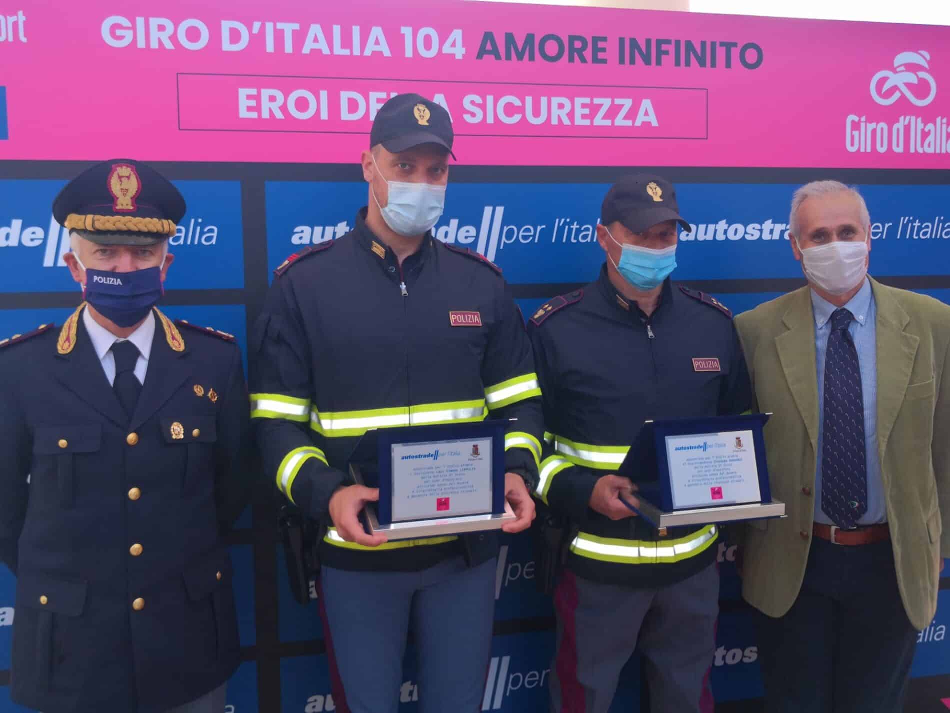 Con la partenza del Giro d´Italia tornano anche le premiazioni degli “Eroi della Sicurezza”, iniziativa giunta al decimo anno e nata dalla collaborazione tra Polizia di Stato e Autostrade per l´Italia per valorizzare l´operato degli agenti e degli addetti autostradali che ogni giorno presidiano la viabilità sulle arterie ad alto scorrimento lungo il Paese.