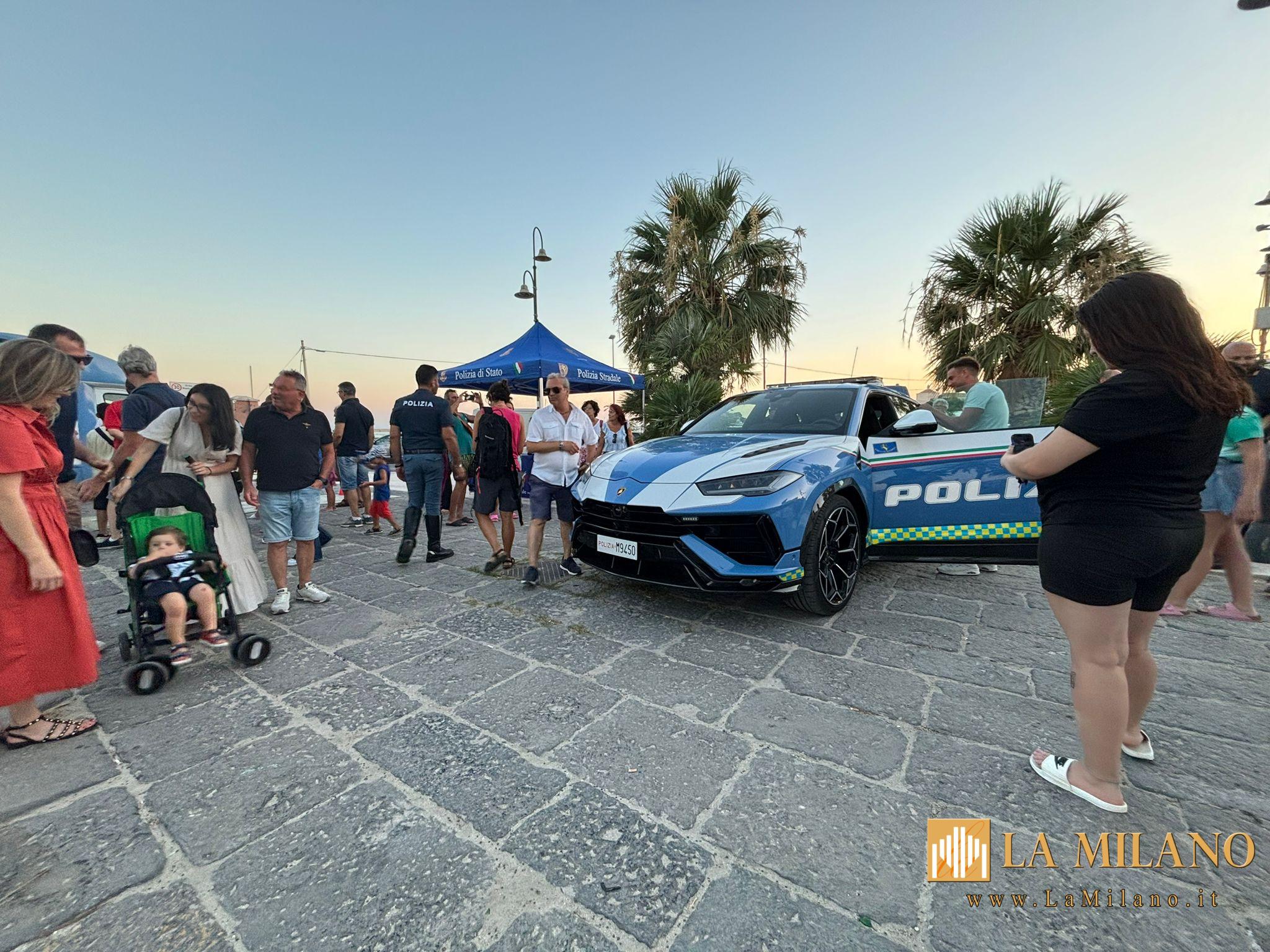 Manfredonia: “E…state con noi 2024” la campagna estiva sulla sicurezza stradale. Presenti la Lamborghini Urus, il Camper Azzurro e il SuperSuv della Polizia.